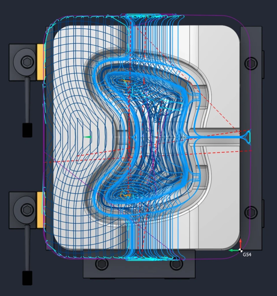 Una operación versátil y multifuncional diseñada para manejar trayectorias de herramienta simples y complejas. Esta operación también admite contorneado 2.5D, lo que permite mecanizar en múltiples niveles Z en una sola operación. La edición interactiva de trayectorias en la vista 3D permite ajustes en tiempo real para un control preciso.