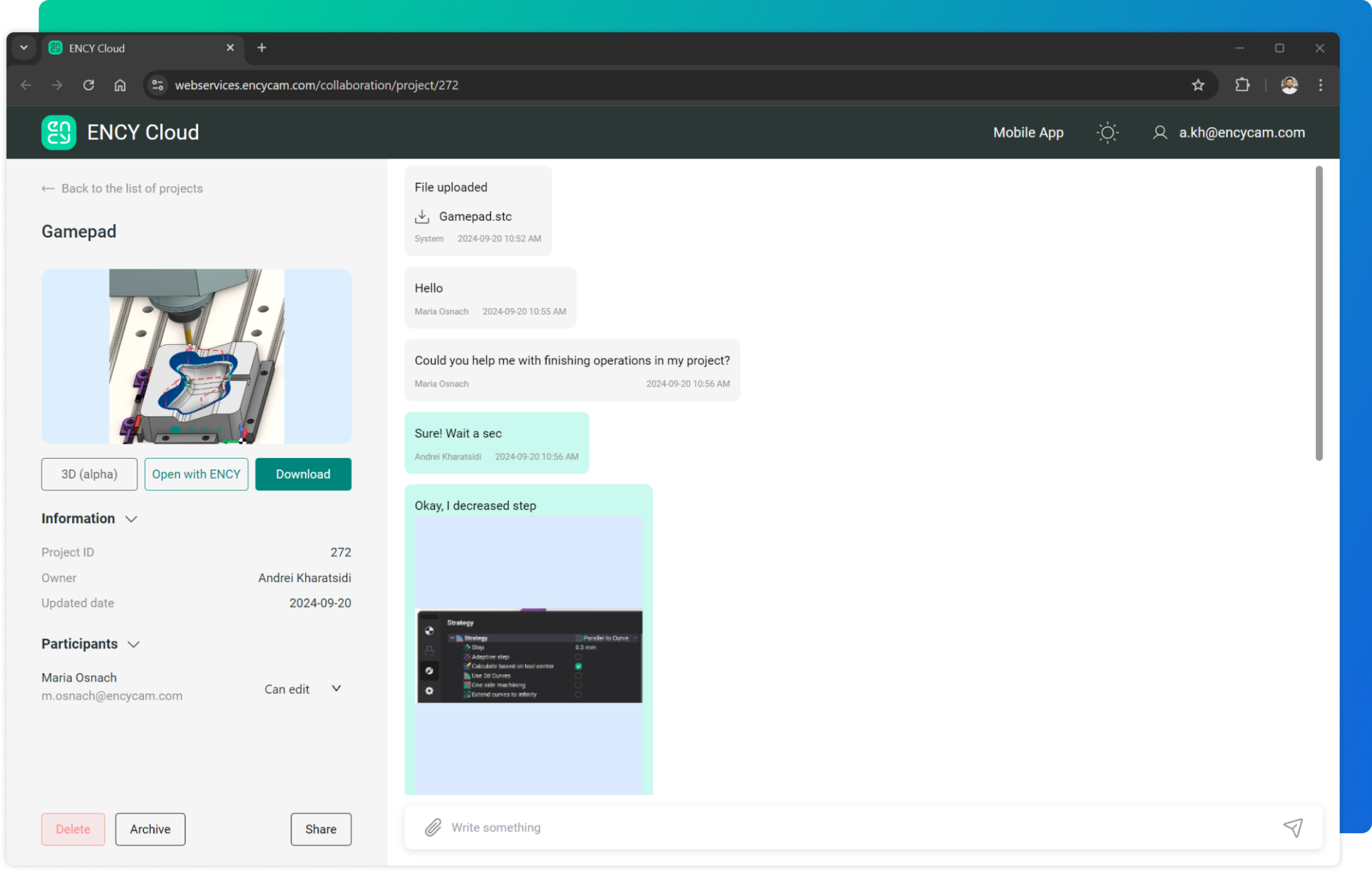 Previsualizar el proyecto en la web y si es necesario, descargarlo y abrirlo en el software CAD/CAM con un solo clic