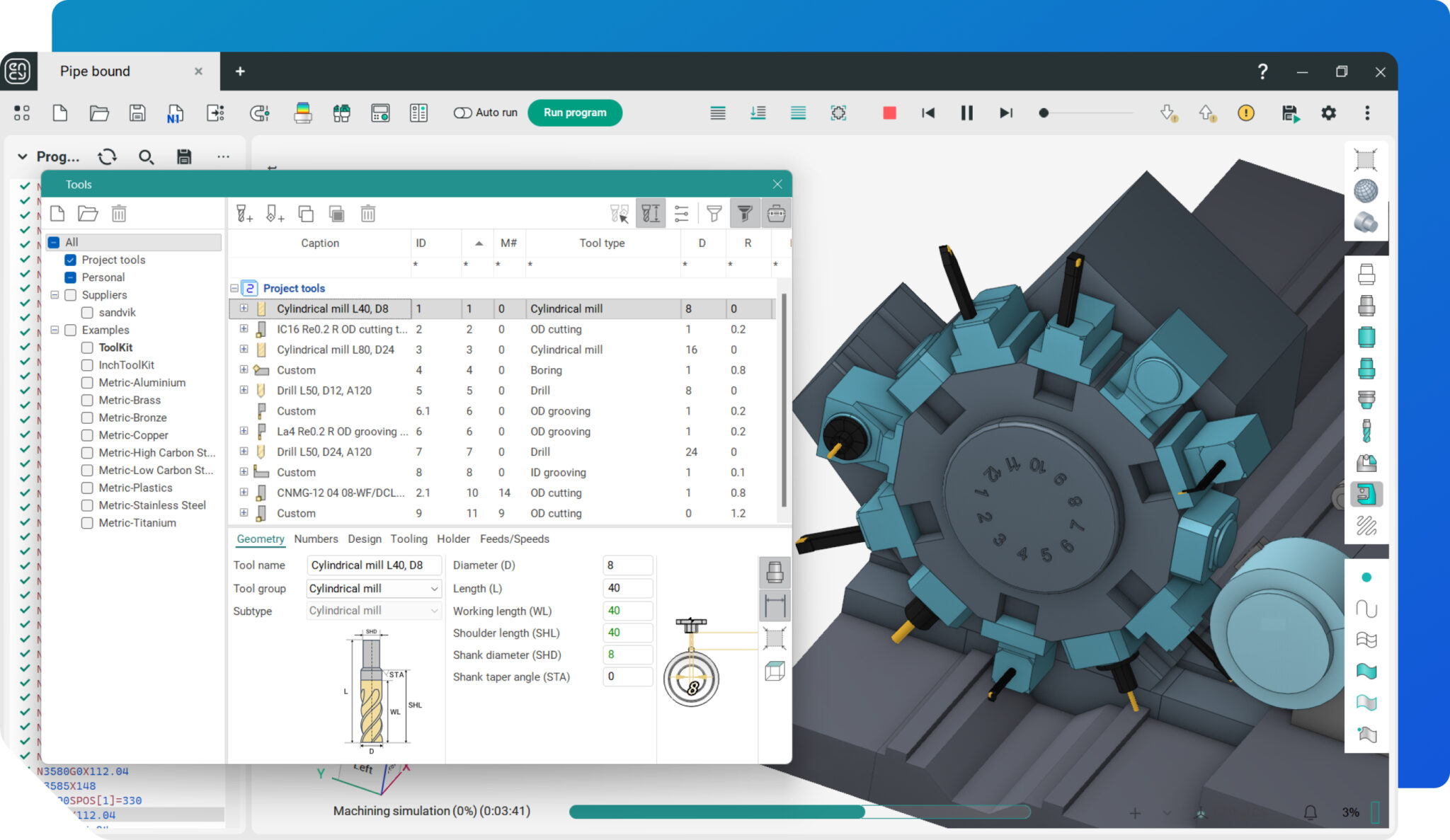 Simula y edita el código NC completo. Visualiza las trayectorias de corte, el material, la maquina CNC y mucho más