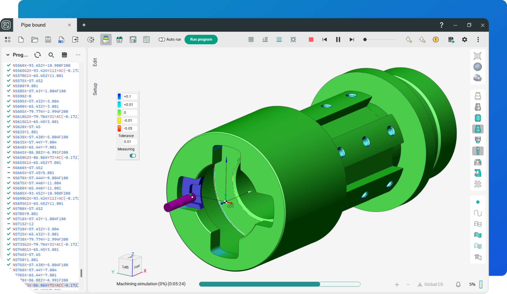 Las funciones de simulación de ENCY Tuner incorporan detección de colisiones, detección de tolerancias de la pieza y visualización de la calidad del mecanizado, garantizando un flujo de trabajo preciso y confiable.