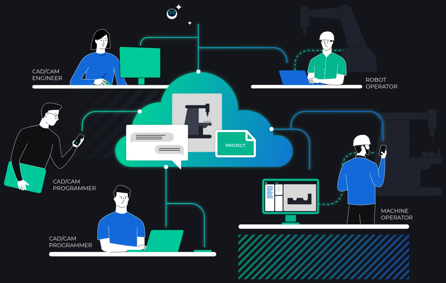 Espacio de trabajo digital en la nube para programadores CAD/CAM y operadores de máquina