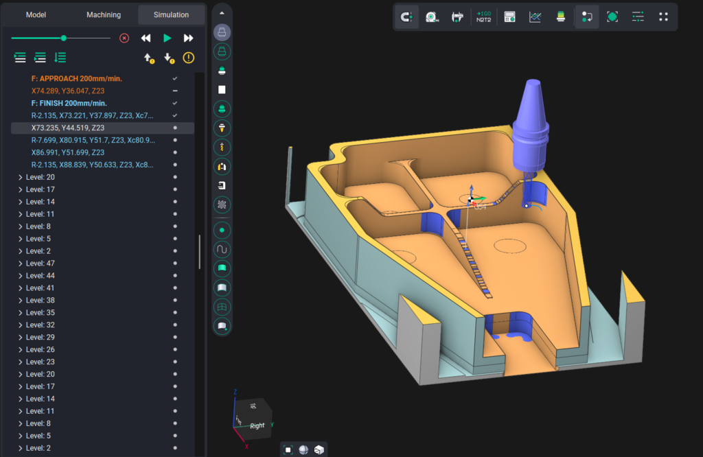 - Herramientas de Simulación: Visualiza el mecanizado, detecta errores y estima tiempos.